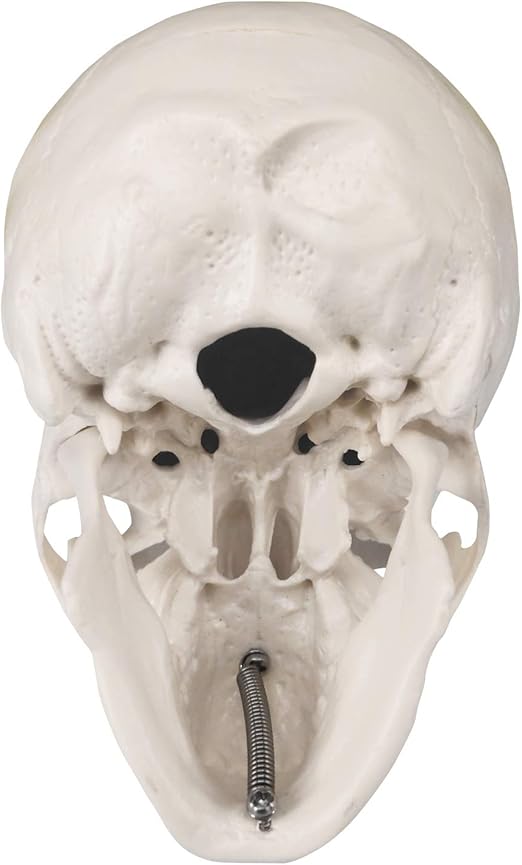 Küçük insan kafatası modeli sadece bir avuç içi büyüklüğünde olmasına rağmen gerçekçi bir kemik dokusuna ve net dikişlere sahiptir. Tüm foramen ve fossa, kafatasının tek tek kemiklerini açıkça tanımlayacak şekilde doğru bir şekilde görüntülenir.