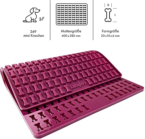 Köpekler için pişirme: Standart fırın tepsisi boyutlarındaki bu pişirme matı ile hızlı ve kolay bir şekilde mini kemik şeklinde 249 lezzet hazırlayabilirsiniz.