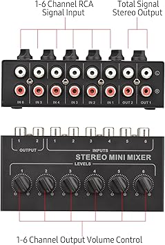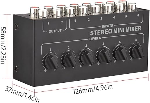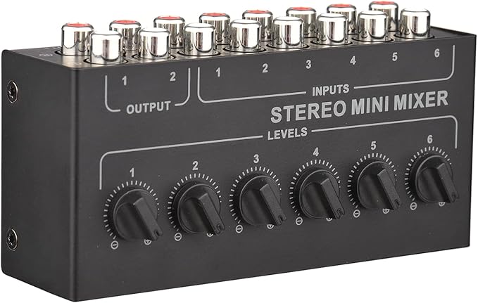 Mini Stereo 6 Kanallı Pasif Mikser RCA Taşınabilir Ses Mikseri 6 In 2 Out Stereo Dağıtıcı Ses Kontrolü Pil Gerekmez