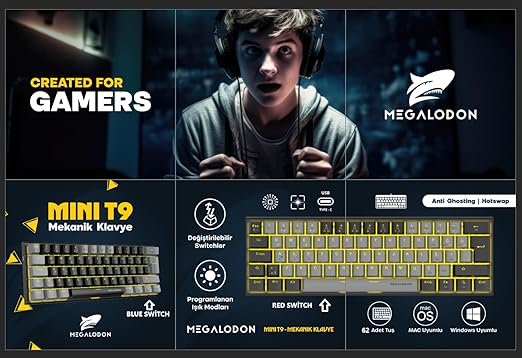Mini T9 Türkçe Q Mekanik Klavye Red Switch Gamer Oyuncu Klavyesi