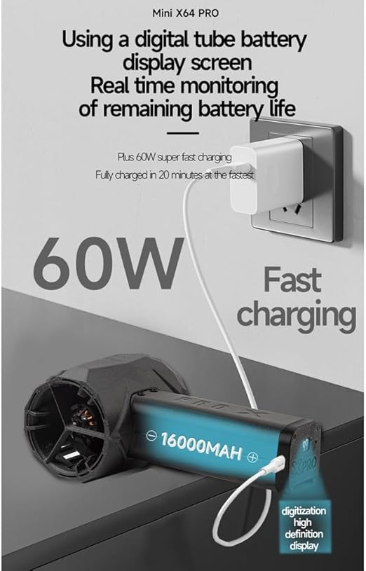 Pil geliştirme: 10 kez ultra yüksek hız deşarjı, 16000 mAh süper uzun pil ömrü (4000 x 4), 60 W süper hızlı şarj, güçlü ve uzun ömürlü performans, yaklaşık 10 saat pil ömrü.