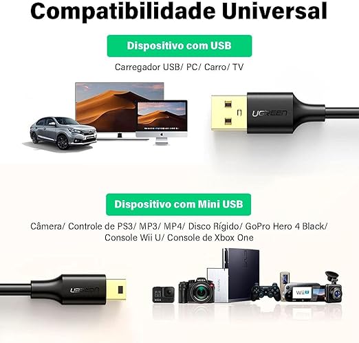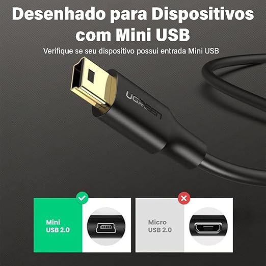 Mini USB Data ve Şarj Kablosu 50 Cm, Siyah