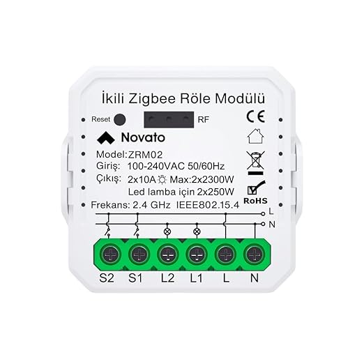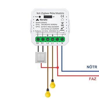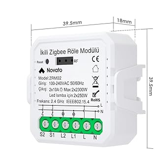 Çift çıkışlı, anahtar girişli, mini boyut,Zigbee bağlantı tuya akıllı switch. 2 adet 10 amper çıkış, 220 V girişe sahip, küçük boyutu sayesinde her kasaya sığan Tuya uyumlu ikili Zigbee röle.