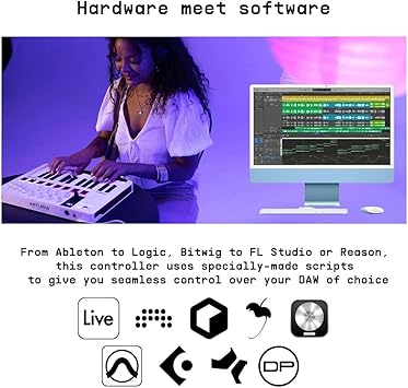 MiniLab 3, kompakt ve hafif tasarımı, derin DAW entegrasyonu, MIDI çıkışı ve USB-C bağlantısı ile yatak odasından sahneye kadar her türlü ortama sorunsuz bir şekilde uyar