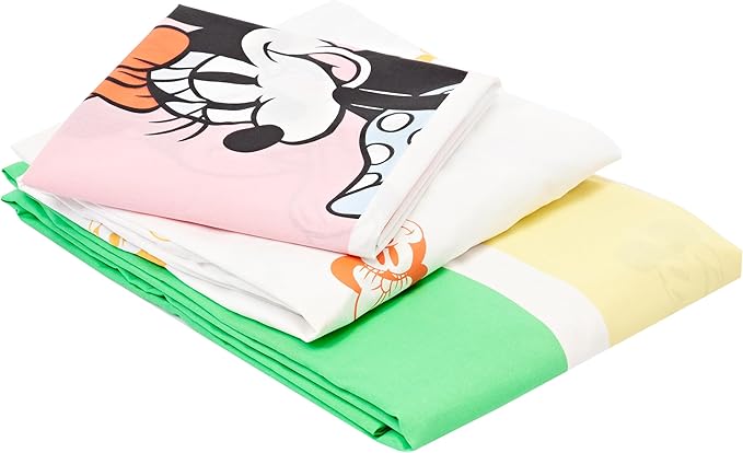 Minnie Mouse Rainbow Lisanslı Karakter Baskılı%100 Pamuk Nevresim Takımı, Çok Renkli, Tek Kişilik (Nevresim: 160×220 cm/Lastikli Çarşaf: 100×200 cm / 1 Adet Yastık Kılıfı: 50×70 cm)