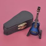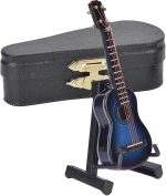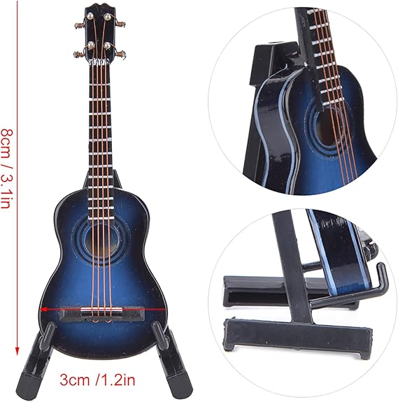 Minyatür Klasik Gitar Modeli Standlı ve Kasalı Mini Müzik Aleti Çoğaltma Mini Ahşap Gitar Masaüstü Dekorasyon Süsler Enstrüman Modeli Dekorasyon(Mavi)