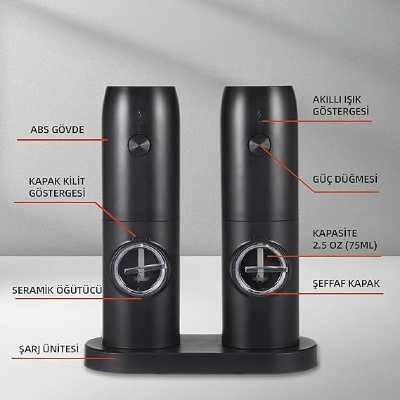 Mio SG2 600mAh Şarj Üniteli Işıklı Tuz Karabiber Değirmeni