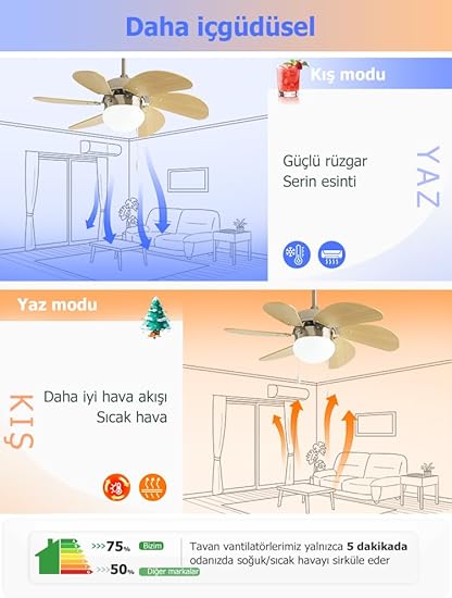 VERİMLİLİK: 5 Dakika içinde Odadaki Havayı Etkili Şekilde Sirküle Eder, Yaz ve Kış Modları ile Dört Mevsim Kullanım İmkanı Sunar