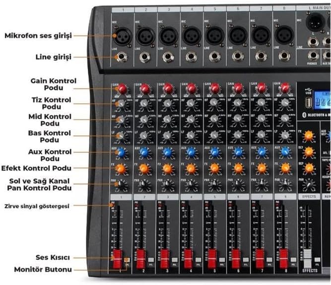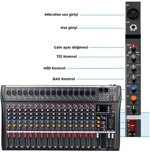 Mix DM-16 Deck Mikser 16 Kanal Ses Mikseri (Bluetooth USB Efekt)