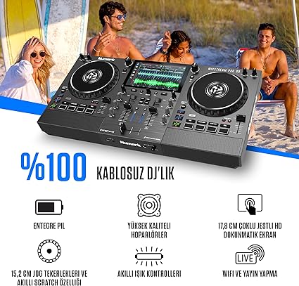 Mixstream Pro Go Amazon Müzik Özellikli Pille Çalışan, Hoparlörlü DJ Kontrol Ünitesi/Player