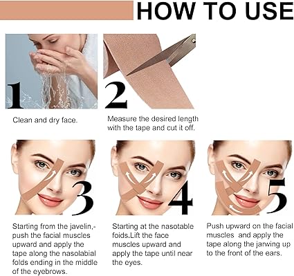 Miyofasyal Yüz Sıaştırma Bandı, Yüz Germe Bandı, Kırışıklık Karşıtı Bantlar, Donma Önleyici Etiket, Boyun Germe Bandı, Üni, Cildi Sıaştırma ve Sıaştırma için, 2,5 cm, 5 m