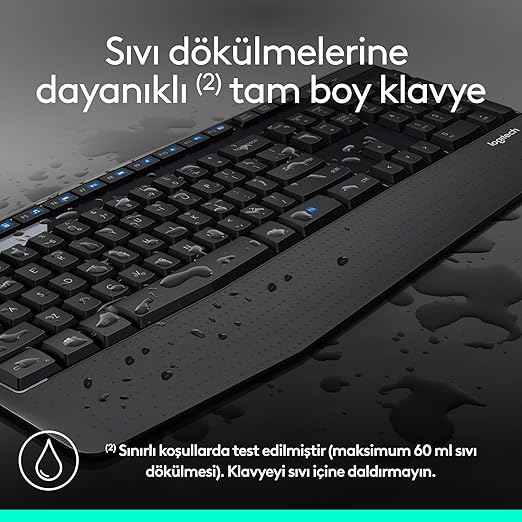 Klavye maksimum 60 ml kadar sıvı dökülmelerine dayanıklıdır. Yüksekliği ayarlanabilen sağlam eğimli ayaklar ile birlikte gelir