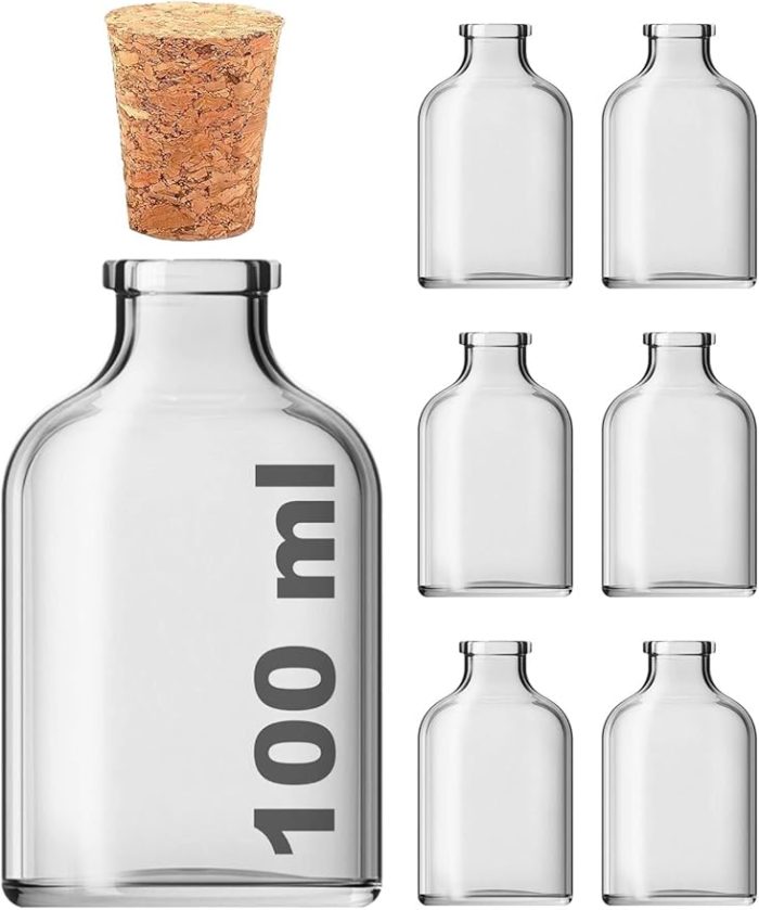 ml Düğün, Kına, Nişan, Kolonya, Koku, Hediyelik Şişesi Şeffaf Mantar Tıpalı 100 cc Cam Şişe (Şeffaf 6 Adet)