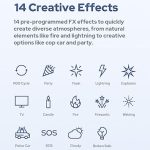 Farklı ışık efektleri: ML100RL yangın, patlama, havai fişek, kaynak, parti ve daha fazlası gibi 14 efekt ile farklı atmosferler oluşturur. Daha fazla yaratıcılık için farklı ışık efektleri arasında hızlı geçiş yapın.