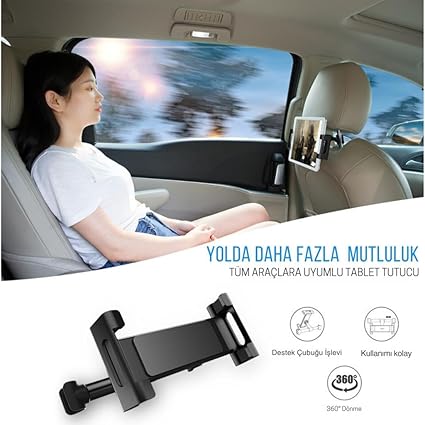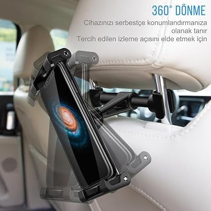 mobile Araç İçi Arka Koltuk İçin Tablet Tutucu, 360 Derece Dönebilen Ayarlanabilir Tablet, Telefon Tutucu Siyah