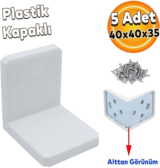 Mobilya Dolap Askı Elemanı Montaj Bağlantı Sabitleme Demiri Beyaz L Demir Köşebent Gönye 40x40x35 mm (5 ADET)