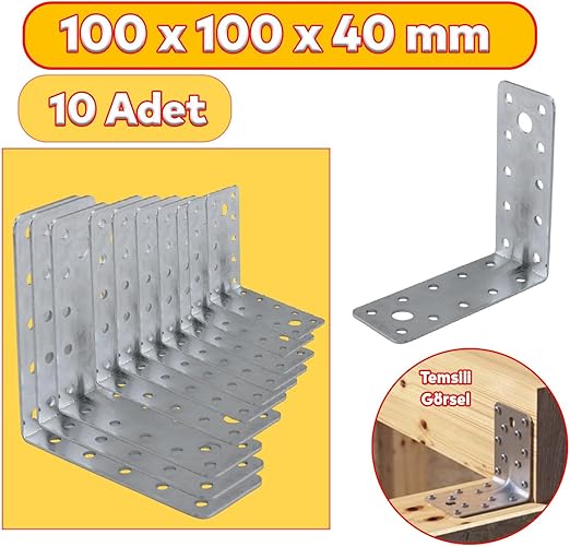 Mobilya Dolap Duvar Sabitleme 10 ADET Metal Köşebent 100x100x40 Mm Bağlantı Aparatı L Demiri Gönye