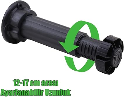 Mobilya Dolap TV Ünitesi Tezgah Ayağı Ayarlanabilir 12 cm Siyah Denge Destek Ayak 10 ADET