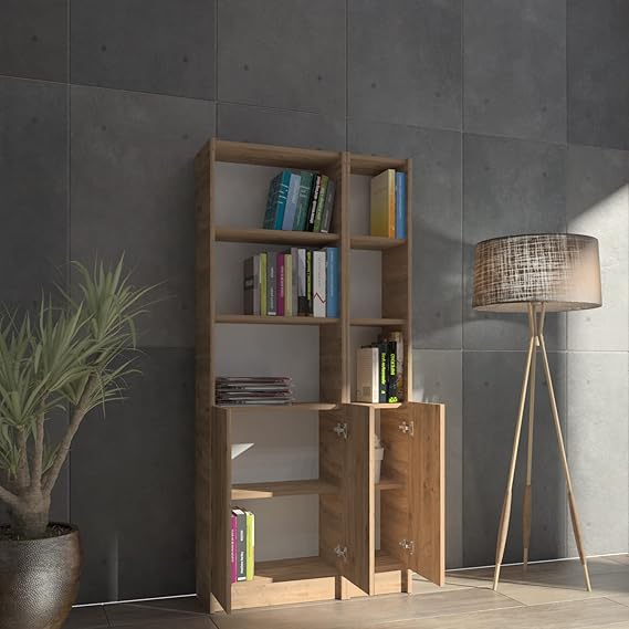 MOBİLYA FLAT85 KİTAPLIK 3 KAPAKLI KÜTÜPHANE ÇOK AMAÇLI DOLAP ÇAM