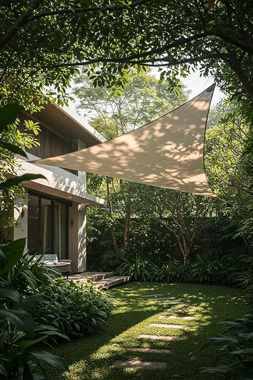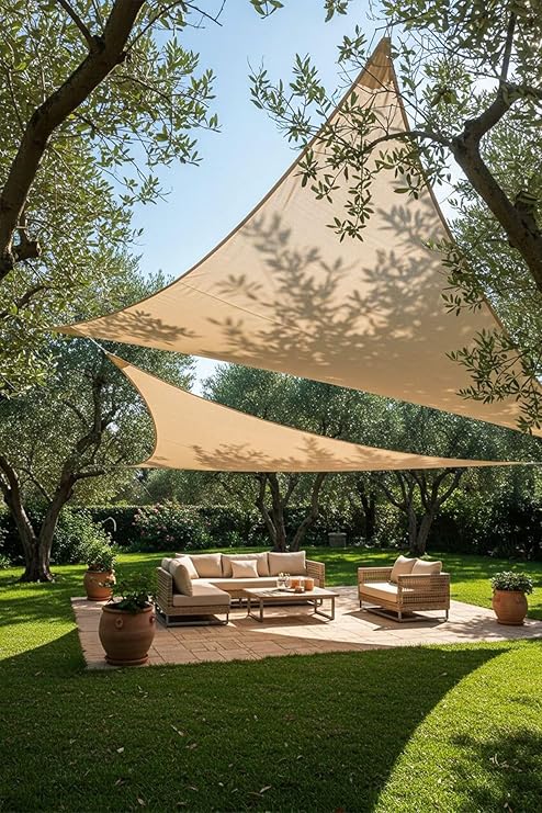 Model Jüt Üçgen Gölgelik Tente – 4m x 4m x 5.5m | 180gr/m² File Kumaş |%95 UV Koruma | Bahçe, Teras, Balkon Gölgelik | Estetik Yarasa Tipi Tasarım | (Krem, Yeşil, Gri, Mavi, Turuncu) (Krem)