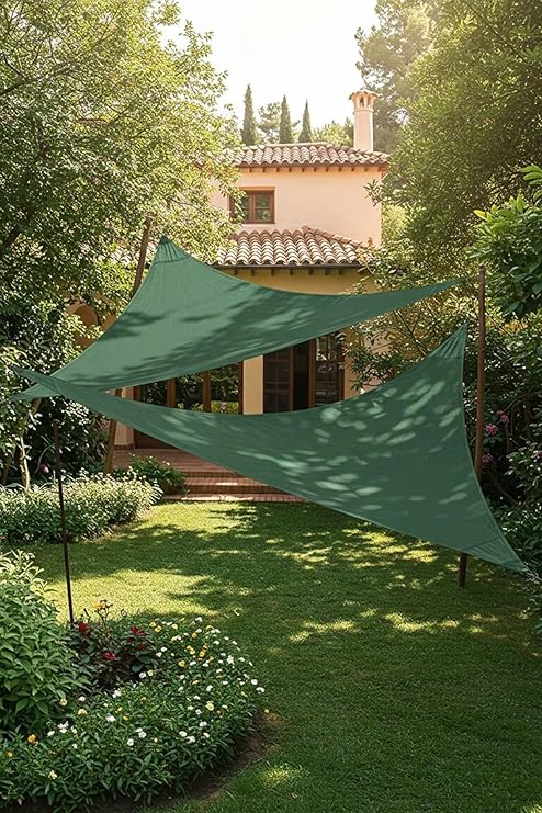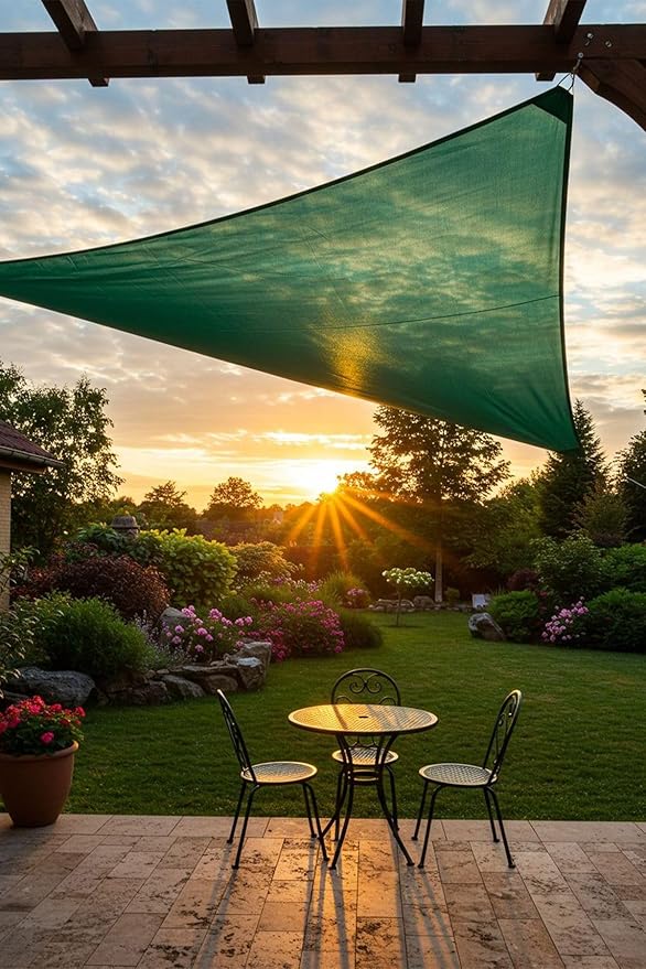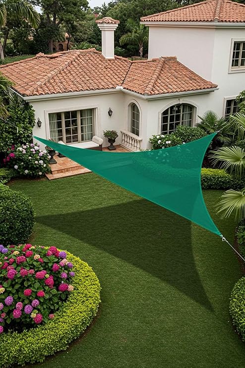 Model Jüt Üçgen Gölgelik Tente – 4m x 4m x 5.5m | 180gr/m² File Kumaş |%95 UV Koruma | Bahçe, Teras, Balkon Gölgelik | Estetik Yarasa Tipi Tasarım | (Krem, Yeşil, Gri, Mavi, Turuncu) (Yeşil)