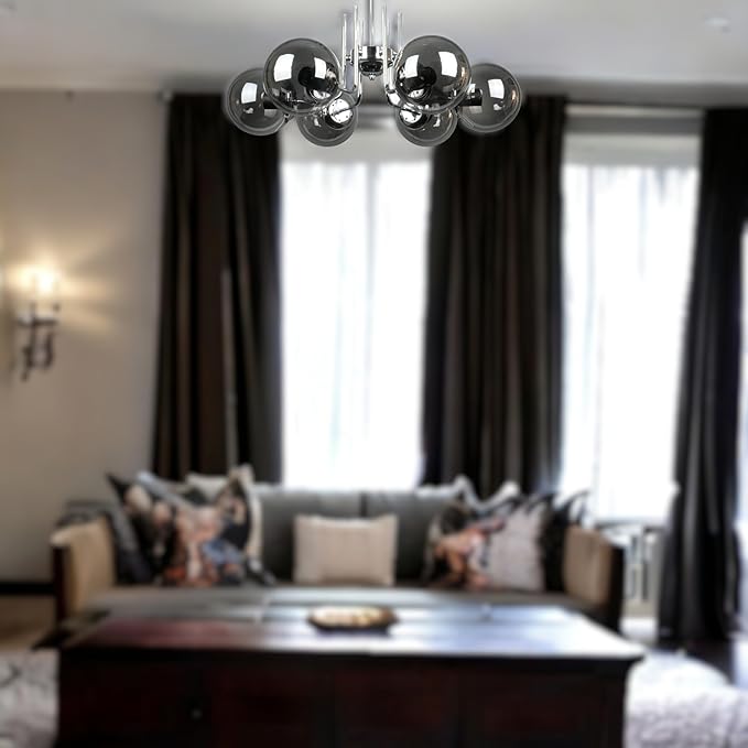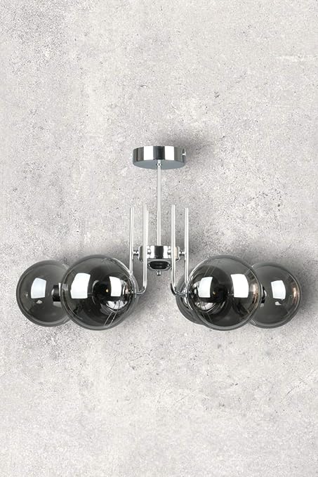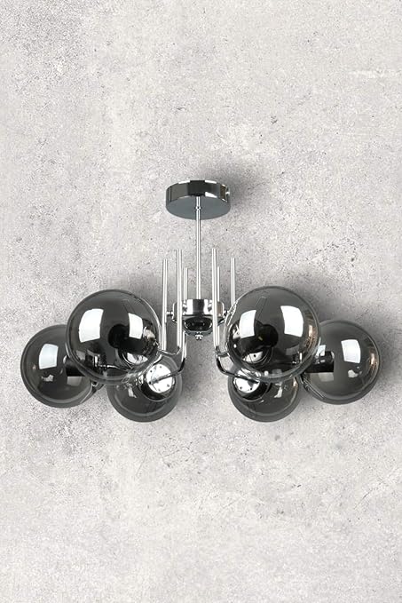 Modern Tasarım Mutfak – Salon – Yatak Odası – Tavan Krom Renk Füme Camlı 6 Lı Avize
