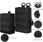 MOLLE SİSTEMLERİ: İki kayış ve bir çıtçıt vardır. Kemer, sırt çantası, taktik yelek ve diğer MOLLE sistemine ek bir aksesuar olarak takmak uygundur. İhtiyacınız olan eşyaları taşımak için molle poşetini kullanabilirsiniz.