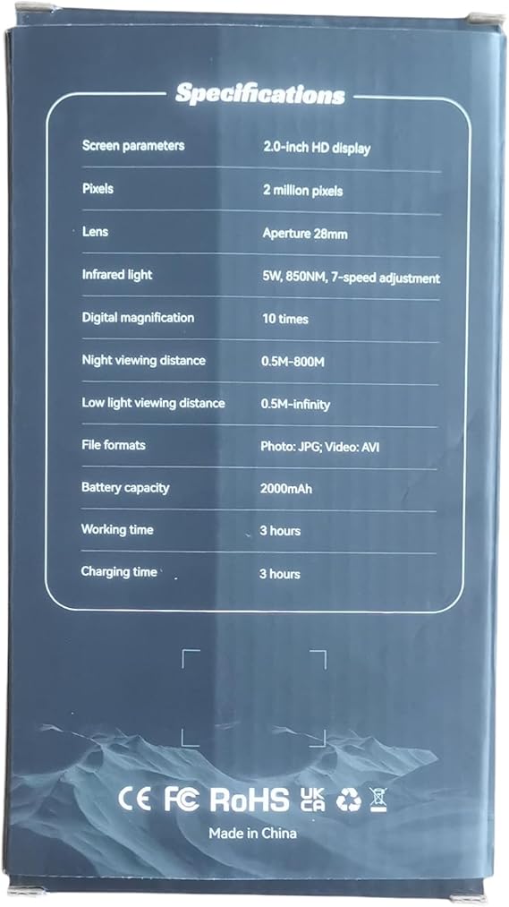 10x Dijital Zoom: Bu yeni nesil kızılötesi monoküler gece görüşü, tamamen karanlıkta bile net görüntüler yakalamanızı sağlayan 10x dijital ve optik zooma sahiptir. Monoküler gece görüşümüz vahşi yaşamı gözlemlemek veya avlanırken, kamp yaparken güvenlik için idealdir.