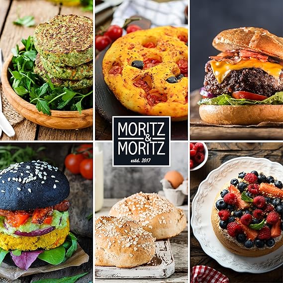 & Moritz Burger Buns kek kalıbı silikon yuvarlak 12 cm Ø – Ekmek, Burger çörekleri ve XXL muffin için – Hamur kazıyıcı ve tarif defteri dahil