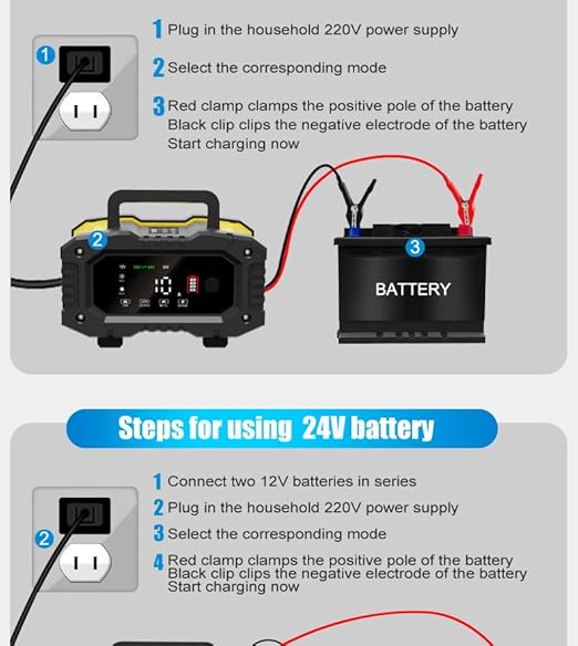 Araba Motosiklet Akü Şarj Cihazı 10A/20A Özenle Seçilmiş 12V24V 150/300W Taşınabilir Araba Akü Şarj Cihazı
