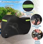 【Özel tasarım】Bu ürünün alt kısmında motosiklet kilidinizin kolayca geçirilebileceği bir delik vardır. Aynı zamanda ön ve arka tarafta, motosikletin konumunu geceleri net bir şekilde görebilmenizi sağlayan yansıtıcı şeritler de bulunur, böylece diğer araçlarla çarpışmaları önler.