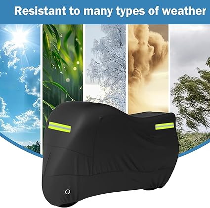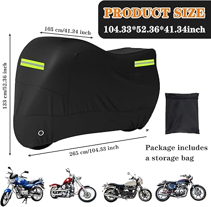 Motosiklet brandası, dış mekan, 420D Oxford kumaş, yansıtıcı şeritli motosiklet örtüsü, kemer tokası, motosiklet koruma kılıfı, su geçirmez ve kışa dayanıklı, siyah, dış mekan (265 x 105 x 133 cm)