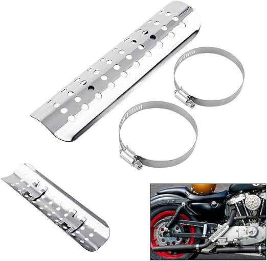Motosiklet egzoz-ısı kalkanı, motosiklet ısı koruma kılıfı, evrensel motosiklet deliği ısı kalkanı, düz egzoz borusu kapağı (gümüş)