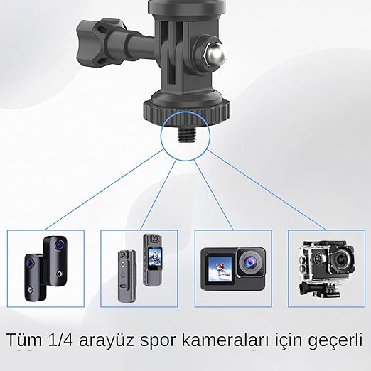 Geniş Uyarlanabilirlik: 15-55 mm’lik uygulanabilir gidon çapı, onu farklı kullanıcı ve model talepleri için ideal kılar; Motosikletler, elektrikli arabalar, yol arabaları ve diğer modeller için mükemmel olan tüm 1/4 arayüzlü aksiyon kameralarına uygundur