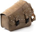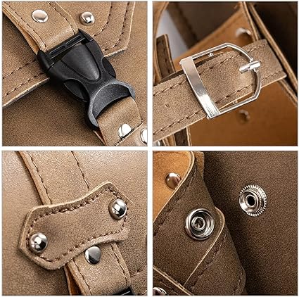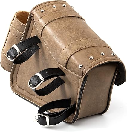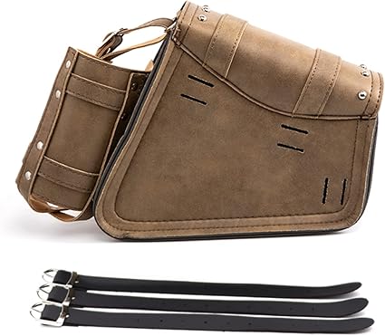 Motosiklet Sele Çantaları – Kahverengi PU Deri Salıncak Çantası Yan Cepler Üçgen Bagaj Çantası Büyük Kapasiteli ve Su Şişesi Tutuculu – Sol Tarafı