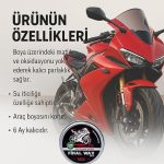 Motosiklet Boyası İçin Üst Düzey Koruma Boyayı güneş ışınları, yağmur, çamur ve çevresel etkilere karşı korur. Renk solmasını önler, uzun süreli parlaklık sağlar