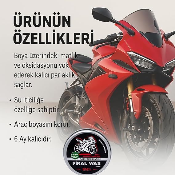 Motosikletlere Özel%50 Katkılı Final Wax 150 ML,Hediye Takoz Cila Süngeri