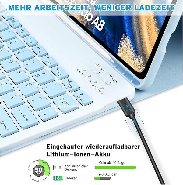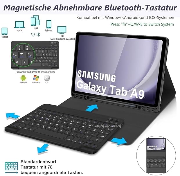 moveteck Samsung Galaxy Tab A9 8.7 İnç Uyumlu Bluetooth Özellik Standlı Kalem Bölmeli Klavyeli Kılıf SM-X110, pembe, Tek Ebat, keyboard-a98.7-pembe