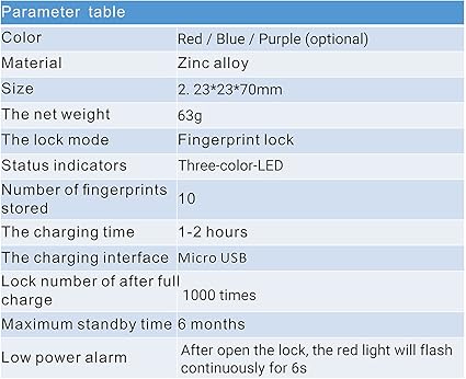 Professional biometric technology, unlock quickly for 0.3s. No key or password are needed, fast and convenient.
