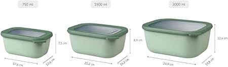 – Multi Bowl Cirqula Rectangular – Kapaklı saklama kabı – Buzdolabı için hava geçirmez saklama kutusu, mikrodalga fırın kabı ve saklama kabı olarak uygundur – 750 ml – Nordic Green