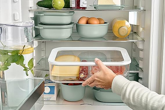 Bileşenler: Sızdırmaz saklama kutuları, pencereli tamamen çıkarılabilir bir kapağa sahiptir. Kapak, hava geçirmez olması için kabı düzgün bir şekilde kapatır