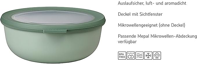 – Multi Bowl Cirqula Round – Kapaklı saklama kabı – Buzdolabı, mikrodalga fırın ve saklama kabı olarak hava geçirmez saklama kutusu olarak uygundur – 750 ml – Nordic Green