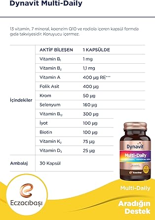 Multi Daily Multivitamin, Mineral, Koenzim Q10, Rodiola 30 Kapsül