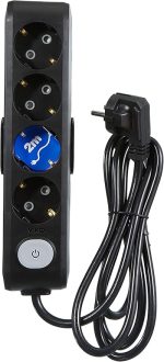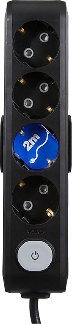 90137403 Multi-Let Siyah Dörtlü Priz Anahtarlı Topraklı Kablolu Çocuk Korumalı 2 Mt