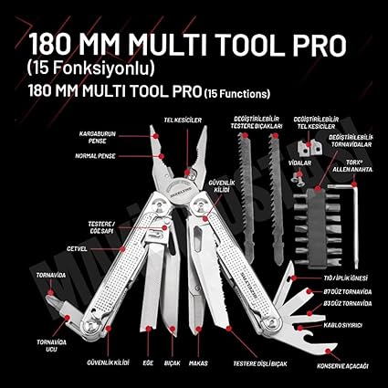 Multi Tool Pro 15 Fonksiyonlu 180 mm Çok Amaçlı Pense Çakı Seti