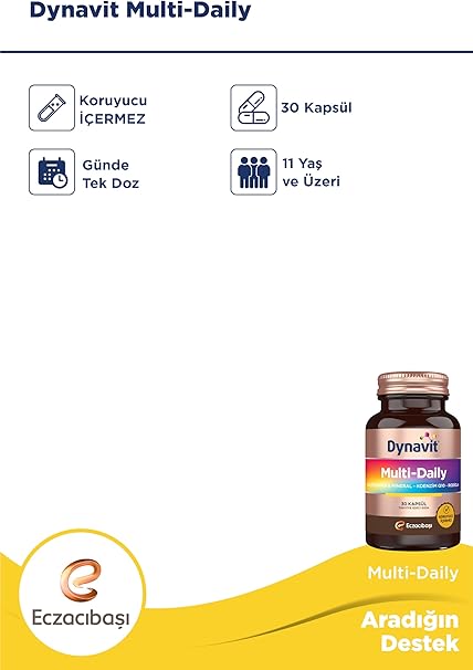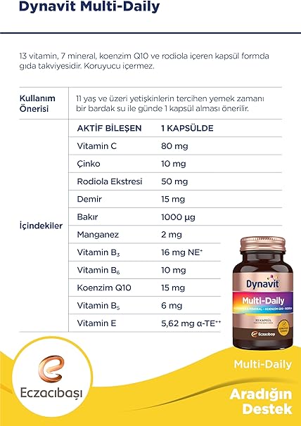 MultiDaily 30 Kapsül – Multivitamin&Enerji – 13 Vitamin, 7 Mineral, Koenzim Q10, Rhodiola Ekstresi (Multi-Daily) ComplexUygunluk: 10 adet stokta