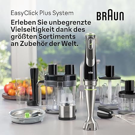5 mutfak yardımcısı bir arada: Bu çok fonksiyonlu el mikseri hiçbir mutfakta eksik olmamalıdır, çünkü EasyClick Plus sistemi sayesinde birlikte verilen aksesuarlar arasında hızlı ve kolay bir şekilde geçiş yapabilirsiniz