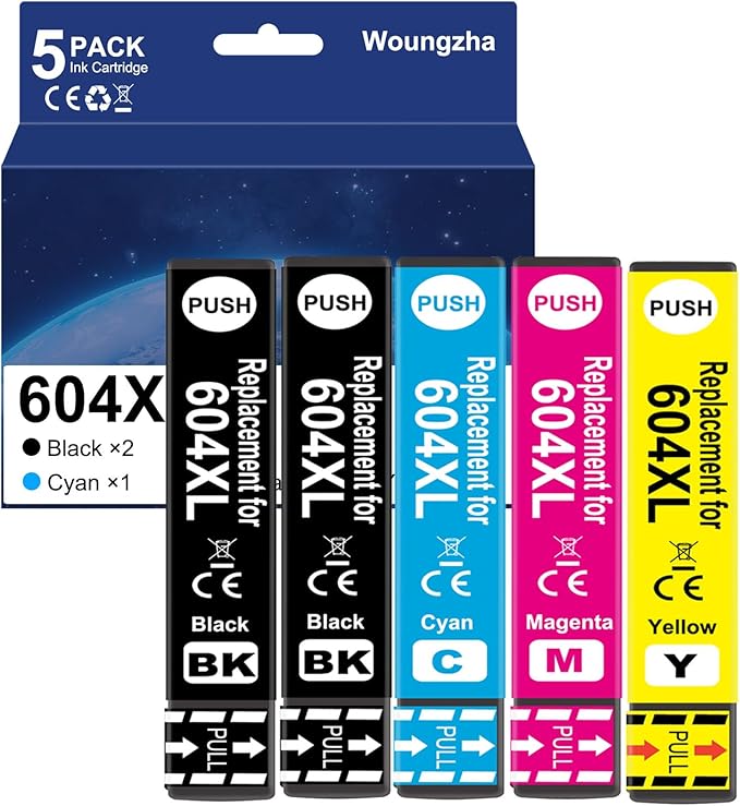 Paket içeriği: Epson 604 XL Çoklu Paket Mürekkep Kartuşları için 5 x Yedek Paket (2 × 604xl Siyah, 1 × 604xl Cam Göbeği, 1 × 604xl Macenta, 1 × 604xl Sarı)