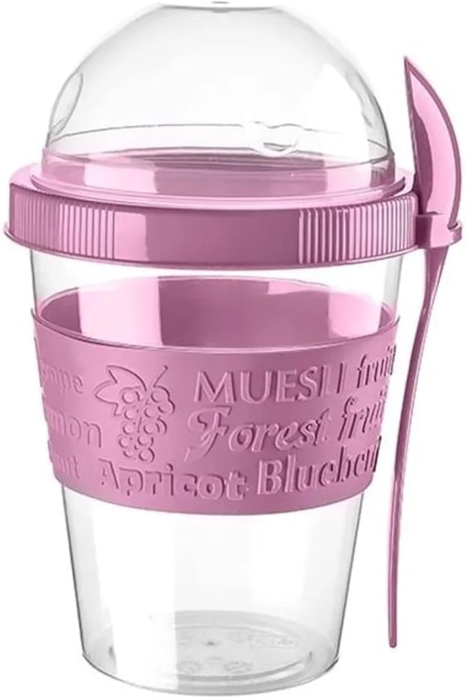 Müsli ve Granola Kapsülü, 600 ML Sızdırmaz Yoğurt Kabı, Take And Go Kaşıklı Granola Kabı, Pratik ve Taşınabilir Tasarım (Pembe)