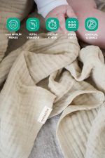 Müslin Bebek Kundak Örtüsü 120X120 cm -%100 Pamuk 4 Kat Müslin Bebek Battaniye (Bej)